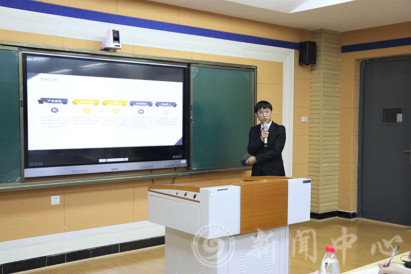 比赛现场,9个项目团队进行了创业项目路演和提问答辩。项目团队分别从创业项目的内部产品投资方向析、市场分析、财务预测、风险评估等方面进行阐述,并回答评委提问,充分展示了自身的专业素养和创新创业潜质。