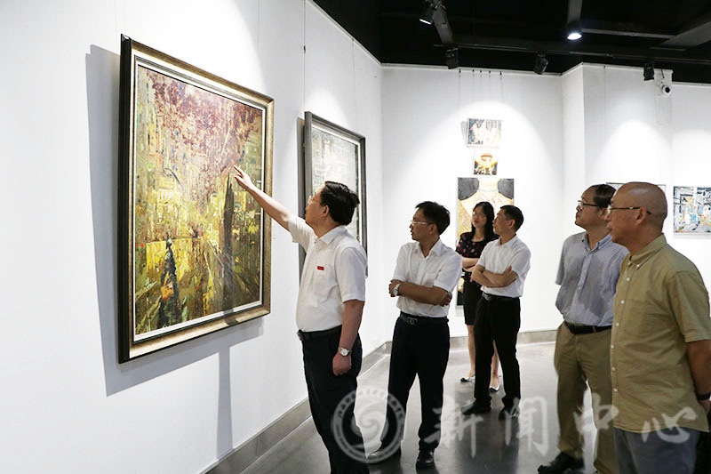 画展开幕式上,参展作者代表,我院美术学院2017级美术学扈万帅同学作代表发言。画展开幕式后,出席活动的领导、嘉宾来到学院美术馆观看了画展。