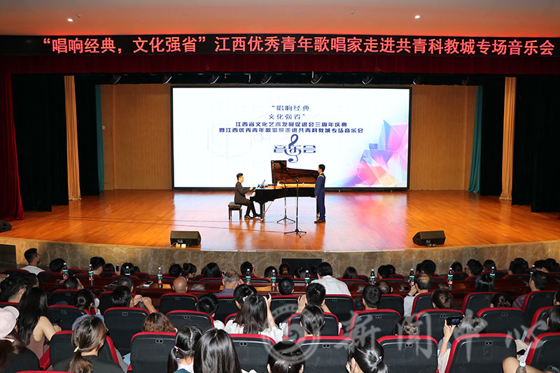 当天晚上,江西省文化艺术发展促进会成立三周年庆典暨“唱响经典,文化强省”江西优秀青年歌唱家走进共青科教城专场音乐会在我院共青校区梦剧场精彩上演。