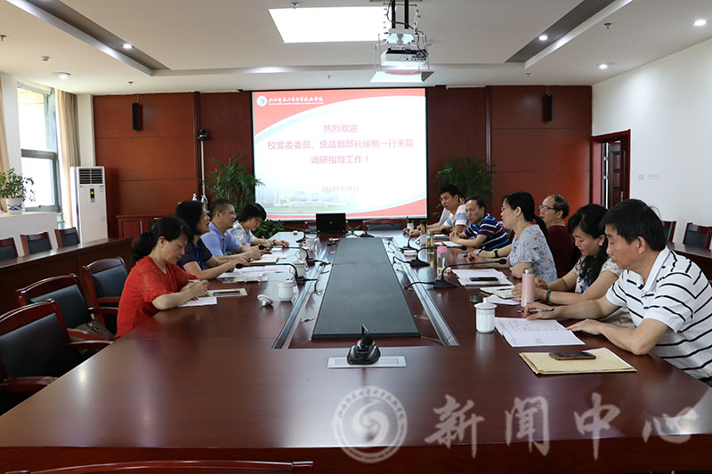 6月6日上午,学校党委委员、统战部部长侯桃,党委统战部副部长李胜利一行4人来院调研指导,并在共青校区知行楼会议室召开调研座谈会,院长李斌、院党委书记许红缨和相关部门负责人参加会议。