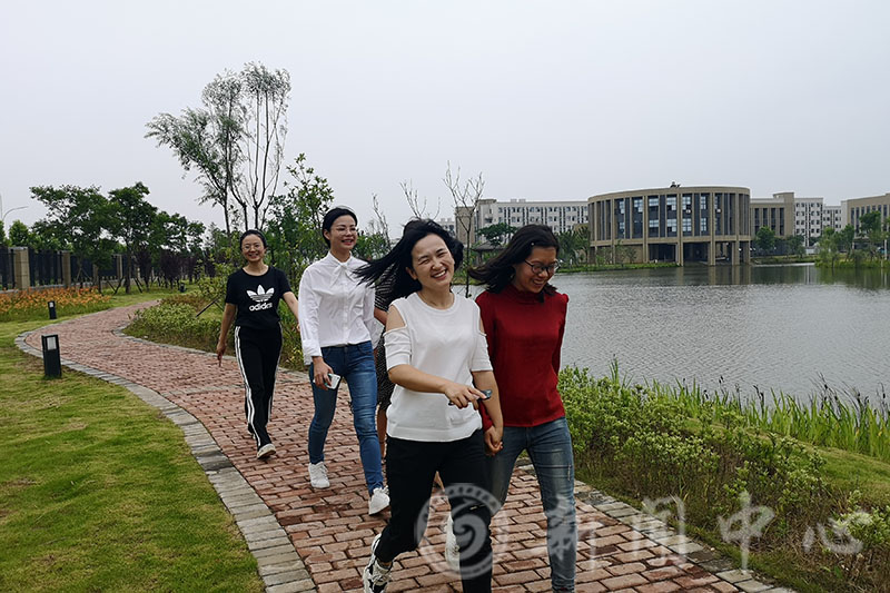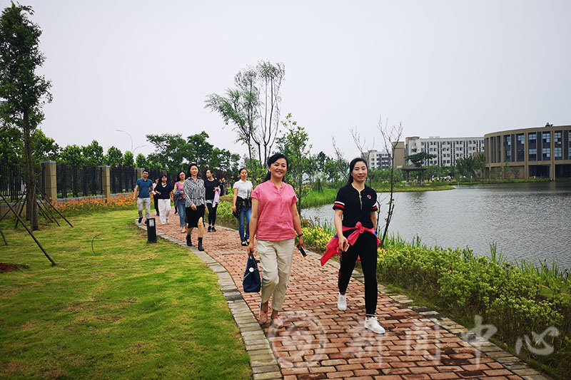 漫步在宽敞的尊师大道、傍水的爱生小道上,如沐春风、欢声笑语。一路上,教职工们在天蓝气爽、湖光草色中感受着共青校区的秀美,既锻炼了身体,又愉悦了身心,同时还增强了全院教职工的凝聚力和向心力。