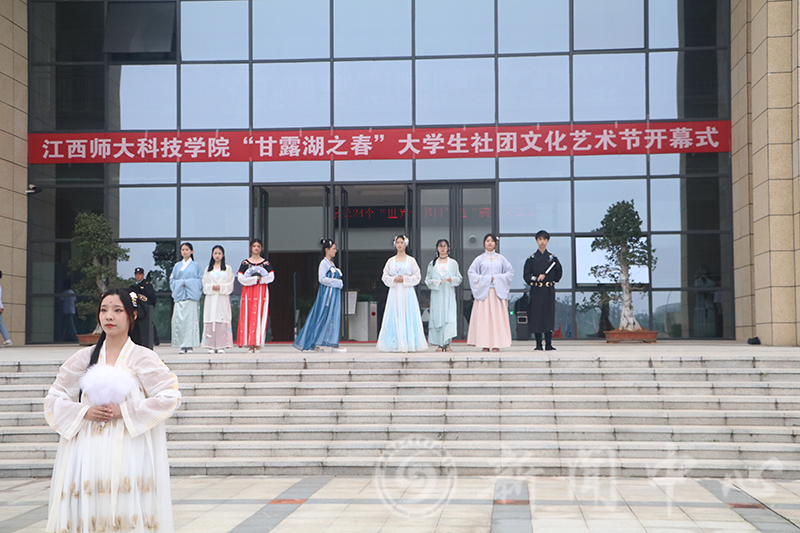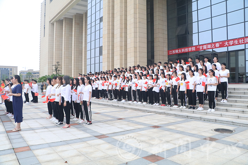 开幕式在歌曲《我和我的祖国》中拉开帷幕,许红缨宣布江西师范大学科学技术学院2019年“甘露湖之春”大学生社团文化艺术节开幕。
