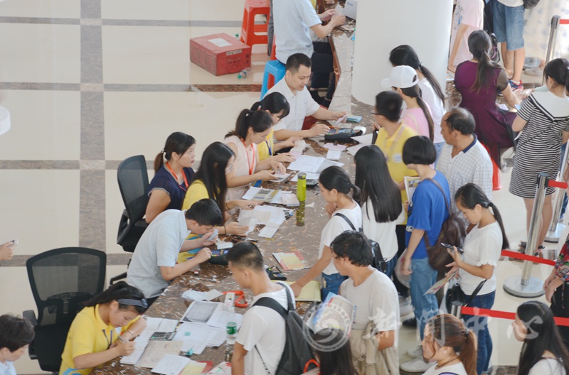 迎新志愿服务一直都是我院迎新工作的亮点。为做好今年迎新志愿者服务工作,学院九月初就启动了迎新志愿者的遴选工作,从高年级学生党员、学生干部、团员青年中遴选了近200名学生志愿者。迎新报到现场的志愿者们9月15日入驻共青新校区,吃住在共青新校区。在三天的迎新志愿服务中,他们身着院徽图案的“小黄衫”,顶着秋后的烈日,活跃在迎新的各个“阵地”,做好新生引导、登记、咨询、入住、领取物资、维持秩序等服务。迎新师生在人群中穿梭忙碌,给家长和新生们带来温暖和感动。