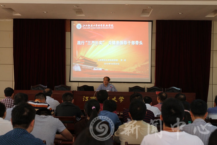 10月20日下午,学院党委在二楼报告厅举行“三严三实”专题教育专题三第一次学习研讨,围绕“严以用权,真抓实干,实实在在谋事创业做人,树立忠诚、干净、担当的新形象”进行研讨,院长李斌作了题为“践行‘三严三实’,关键是领导干部带头”的中心发言,院党委书记程春泉主持了学习研讨,学院全体班子成员、各部门负责人、全体教工党员参加了学习研讨。