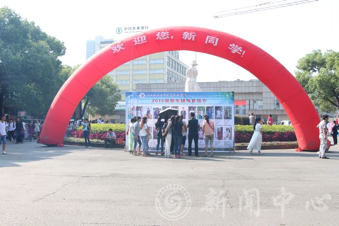美丽的青山湖校区,温馨喜庆的迎新彩虹门,主干道两侧迎新展位整齐有序的摆放,校园内一派热闹而有序的景象。热情细心的迎新工作人员,细致周到的指示牌、引导牌,井然有序、忙而不乱的迎新现场,使整个校园处处洋溢着欢快、喜悦的气氛。新生们带着对大学的期盼和对未来的美好憧憬来到这美丽而又朝气蓬勃的校园。