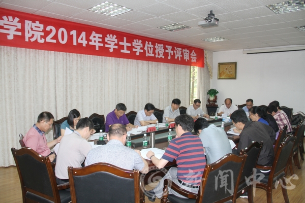 会议先后听取了许红缨作的《2014届学生毕业与学位授予预审情况的报告》和《历年补授学士学位情况报告》;听取了赖经洪就2012届、2013届违纪学生是否授予学士学位情况汇报;张和昆通报了修订学院学士学位授予细则的说明。