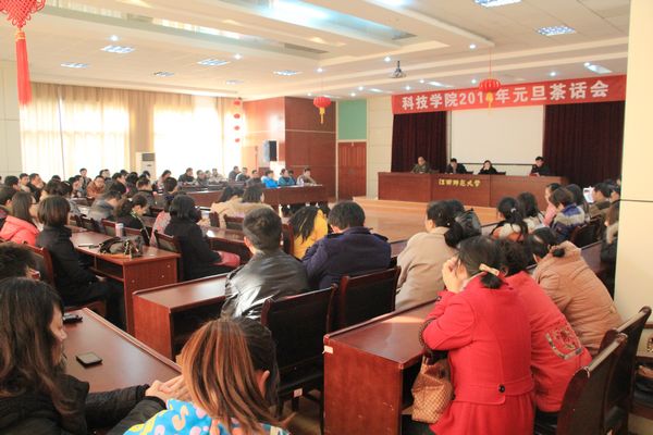 当天下午,学院在双理楼报告厅举行了元旦茶话会。院长刘俊、院党委书记程春泉等学院领导班子成员与全院教职工一起分享满载收获的2013年,展望充满生机2014年。茶话会上,刘俊、程春泉代表学院向学校党政班子对科技学院一如既往的指导、关心、帮助和支持致以崇高的敬意,对支持科学院建设和发展的兄弟单位和各界朋友们表示衷心的感谢,向辛勤工作一年的全院教职工致以美好的祝愿和亲切的问候,用学院2013年十件大事对过去一年学院建设和发展取得的成绩进行了总结,同时结合学院当前的中心工作与大家一起展望2014年。茶会后,院工会还组织了丰富多彩的趣味活动。(文/图 新闻中心、大学生通讯社)