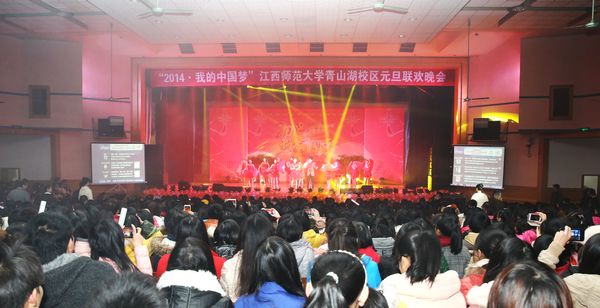 共筑中国梦,同心迎新年。2013年12月31日晚,由我院承办的江西师范大学青山湖校区“2014·我的中国梦”元旦联欢晚会在大礼堂隆重举行。江西师范大学党委副书记何小平、副校长黄加文、纪委书记周晓朗,科技学院院长刘俊、院党委书记程春泉等学院领导班子成员和一千多名师生一同喜迎新年。
