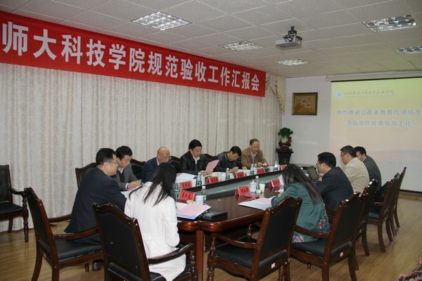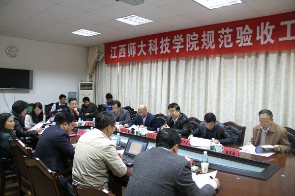 省教育厅发展规划处调研员熊明放主持了第一阶段的汇报会。黄加文首先代表学校致欢迎词,对各位专家来科技学院检查指导、进行规范验收评估表示热烈的欢迎和衷心的感谢,并对江西师大和科技学院办学基本情况作了简要介绍。