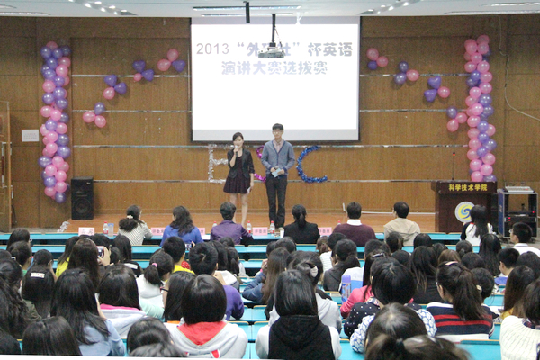 10月18日晚,2013年“外研社”杯全国大学生英语演讲比赛选拔赛在双理楼六楼多功能教室圆满落幕。副院长许红缨应邀出席并为获奖学生颁奖,外教Michael、学校外国语学院徐红教授和我院外语系负责人、外语系专任教师担任比赛评委。经过预赛,来自全院各年级专16名参赛选手业从40位参赛者脱颖而出进取决赛。