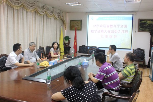 陈钰菊等认真听取了许红缨关于学院应用型人才培养的举措及10年来学院组队参赛情况介绍,数学教研室负责人对今年我院代表队参赛情况及数学建模培训工作作了详细汇报。陈钰菊等对学院人才培养及赛事组织给予了高度肯定和赞扬,对学院数学建模大赛相关工作提出几点希望:第一、要成立专门的教师团队,全面、认真的负责建模工作;第二、注重培养学生用数学思维及方法解决现实问题的能力;第三、注重总结经验,创新激励机制、调动师生指导大赛及参加大赛的积极性。