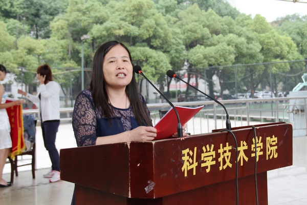 在庄严隆重的国歌后,程春泉作了军训总结讲话。她代表学院向承担我院2013级军训任务的江西预备役师高炮团的教官同志们、军训工作人员和2013级全体辅导员、同学们表示衷心的感谢。她对今年的新生军训作了四点总结,第一,学院领导对新生军训的高度重视及各部门的团结协作、通力配合;第二,全体同学积极参训,圆满完成任务,显示出大学生良好的精神面貌;第三,军训教官们的高度负责、不怕苦、不怕累、高标准、严要求,发扬了人民军队的精神;第四,辅导员们坚守岗位,积极配合工作,保证了军训工作的顺利进行,发挥了教官与同学之间的桥梁、纽带作用。最后她希望,2013级新生把百折不挠、奋勇前进的军训精神带进今后的学习、生活、工作中,不断开拓创新。