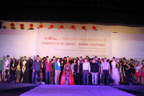 4月18日晚,2013届服装设计与工程(服装设计、服装表演)专业毕业作品动态展示在大礼堂举行。院长刘俊、院党委书记程春泉、副院长许红缨、院党委副书记赖经洪、副院长汪剑、院艺术总监龚声及教务办、学生事务管理中心、艺术设计系等部门负责人出席观看此次服装作品展示,近六百名师生到场欣赏此次展示。