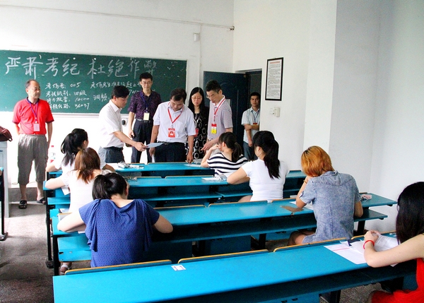 本次考试我院共有考生近3000人,设考场99个,共安排监考人员198人次。为保证考试规范、有序,学院专门购置了摄像镜头、金属探测仪、身份证识别仪、作弊克等现代设备,对考务办公室整个试卷的收发过程进行了全程摄像,每位监考人员和考生进入考场前都进行了安检。考试过程中,流动监考人员使用作弊克等设备对考场情况进行了实时监测,监考教师、考务人员、巡视人员严格按照全国大学英语考试工作要求,确保了考试的公平、公正。