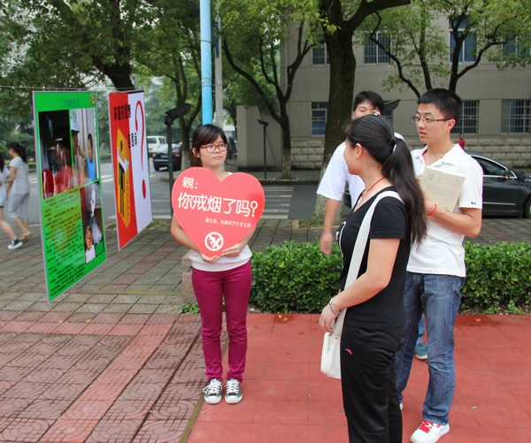 活动介绍了吸烟的危害和无烟日的由来,所有参加活动的同学都进行了禁烟宣誓,并在宣传横幅上签名并表示无烟活动中。活动相关负责人表示,举办本次活动的目的在于依靠同学们自身的影响力,鼓动身边的人积极参与到拒绝吸烟的行列中来,积极营造良好的校园氛围。