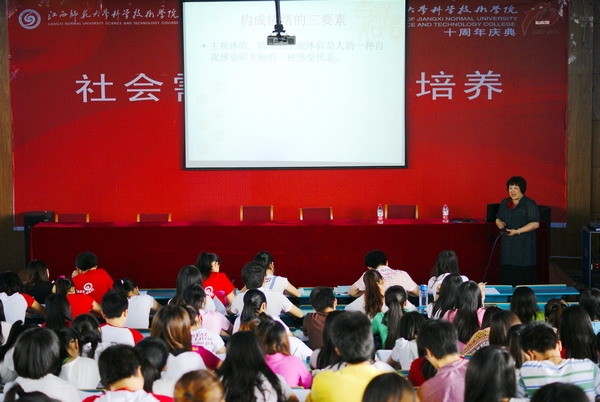 讲座前,付小玲以几道心理测试题开始讲课,引起在座学生的极大兴趣。为了使同学们理解情绪的作用,付小玲深入剖析了情绪的意义和影响,并提出了如何控制情绪的方法。她指出,认识是左右情绪的因素,正确的控制自己的情绪,不但有利于个人素养的提高和综合素质的增强,而且对社会和谐发展有很大的作用。学会控制自己的情绪,有利于我们身心健康的发展,与和谐校园的建设。讲座中,她积极与同学们互动,并强调情绪的重要性,提出将自己的情绪管理好,才能使自己更好的成长。