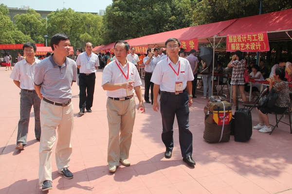 校领导一行兴致勃勃的来各个报到接待服务点,每到一处都仔细询问,认真听取报告,详细了解接待情况。巡视途中,校领导亲切慰问了迎新工作人员,并嘱咐,在炎热的天气下,要时刻注意做好防暑工作,努力提高学生生活保障,切实做好各方面迎新工作,要团结合作、相互协调、相互帮助,尽可能的帮助学生顺利入学。