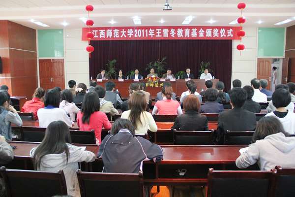 “王雪冬教育基金”由香港多伦多企业集团投资有限公司董事局主席王雪冬先生设立,基金额为1000万。每年将1000万的基金利息用于资助我校优秀贫困生,奖励优秀学生、教职工及引进人才。我院负责该奖项在全校范围内的组织评选工作,此次是自2004年基金设立以来,第七次颁发“王雪冬教育基金奖。(文/余小军 图/万建祥)
