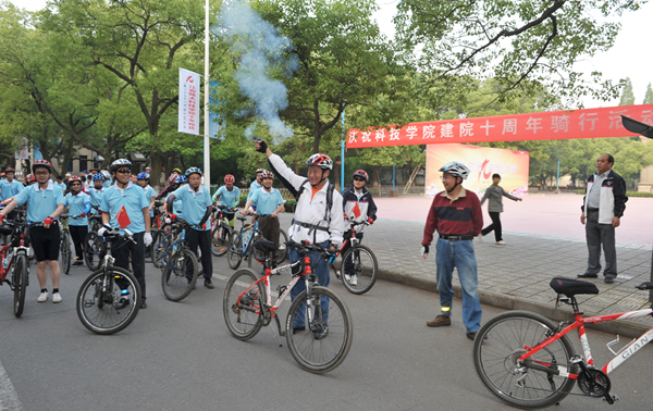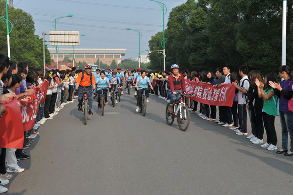 5月26日,距我院10周年院庆倒计时还有2天之际,骑行队隆重举行“喜迎10年院庆自行车骑行重走校址路”活动。学校党委书记傅修延,校长助理熊大冶,学院院长刘俊,党委书记岳忠宪等领导,及校本部、我院师生总共100多人参加了此次活动。