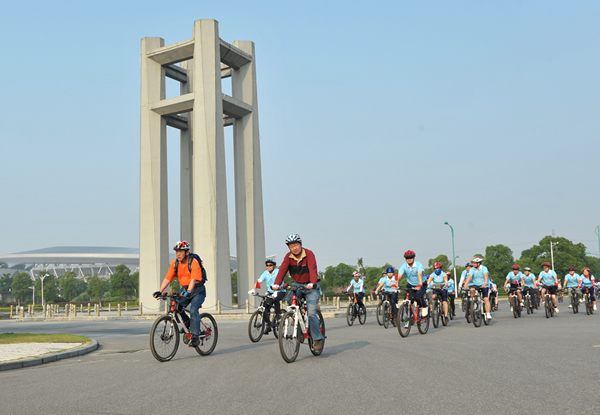 7点15分,骑行队胜利抵达瑶湖校区长胜门,受到了我院在瑶湖校区学生的热烈欢迎。在瑶湖校区,骑行队沿着学院在瑶湖校区的学习、办公场所环绕一圈,感受着学院当年在这里奋力开拓,改革创新的办学历程。7点20分,全体队员到达白鹿会馆,骑行活动圆满结束。