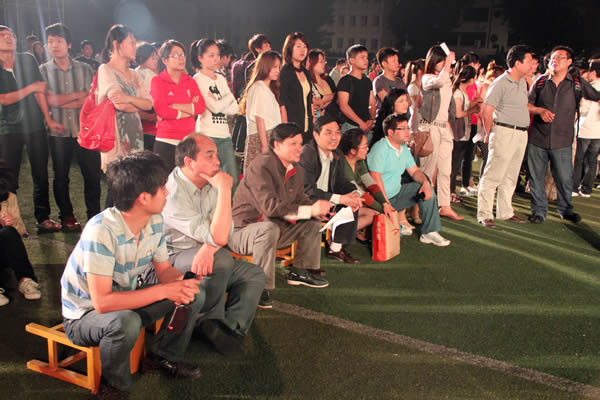 晚7点30分,刘俊院长、岳忠宪书记一行一来到田径场,仔细查看庆典大会和晚会准备情况,细致的了解庆典大会和晚会的程序安排、人员安排、设施安排等各个环节,并仔细的观看了彩排现场节目。