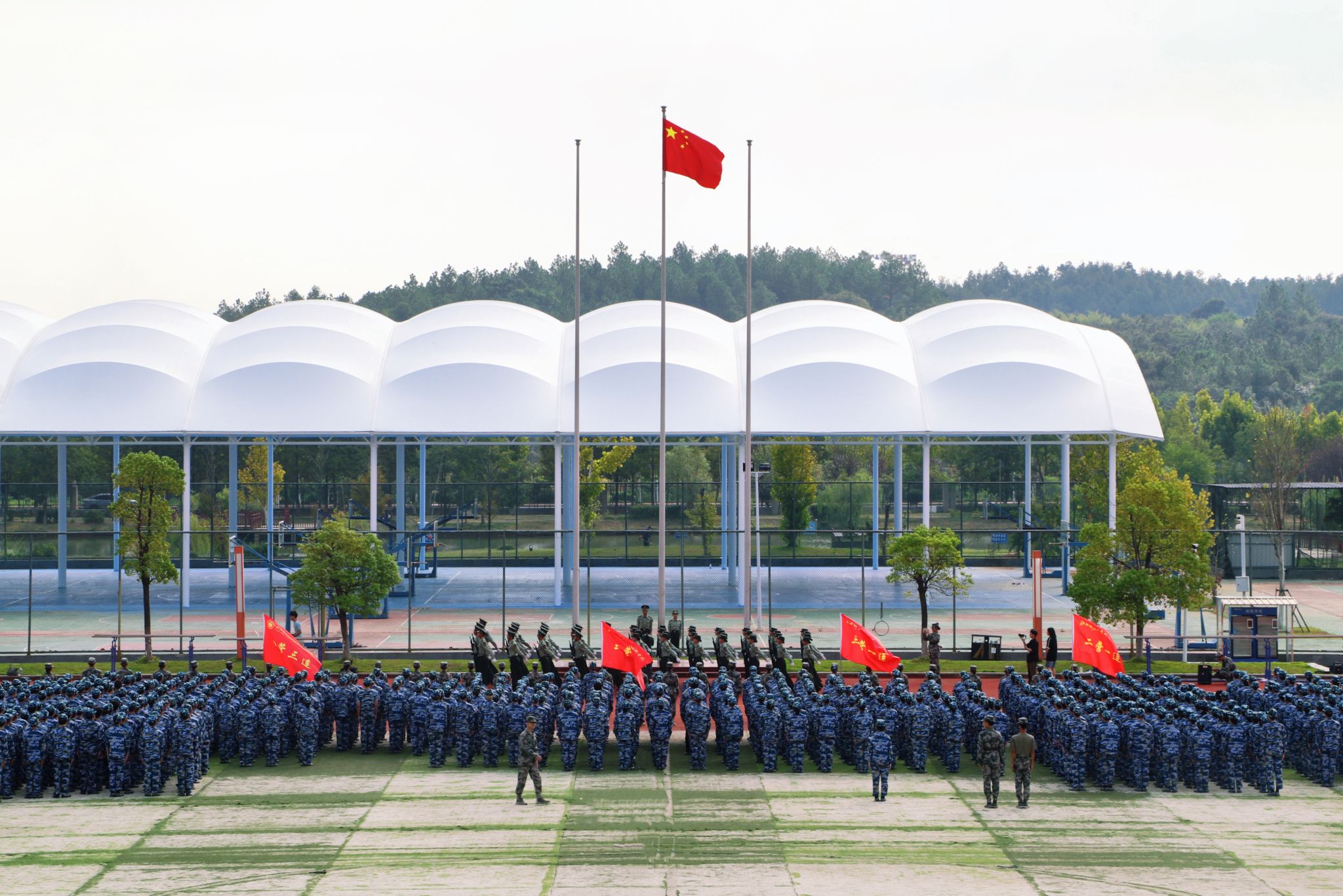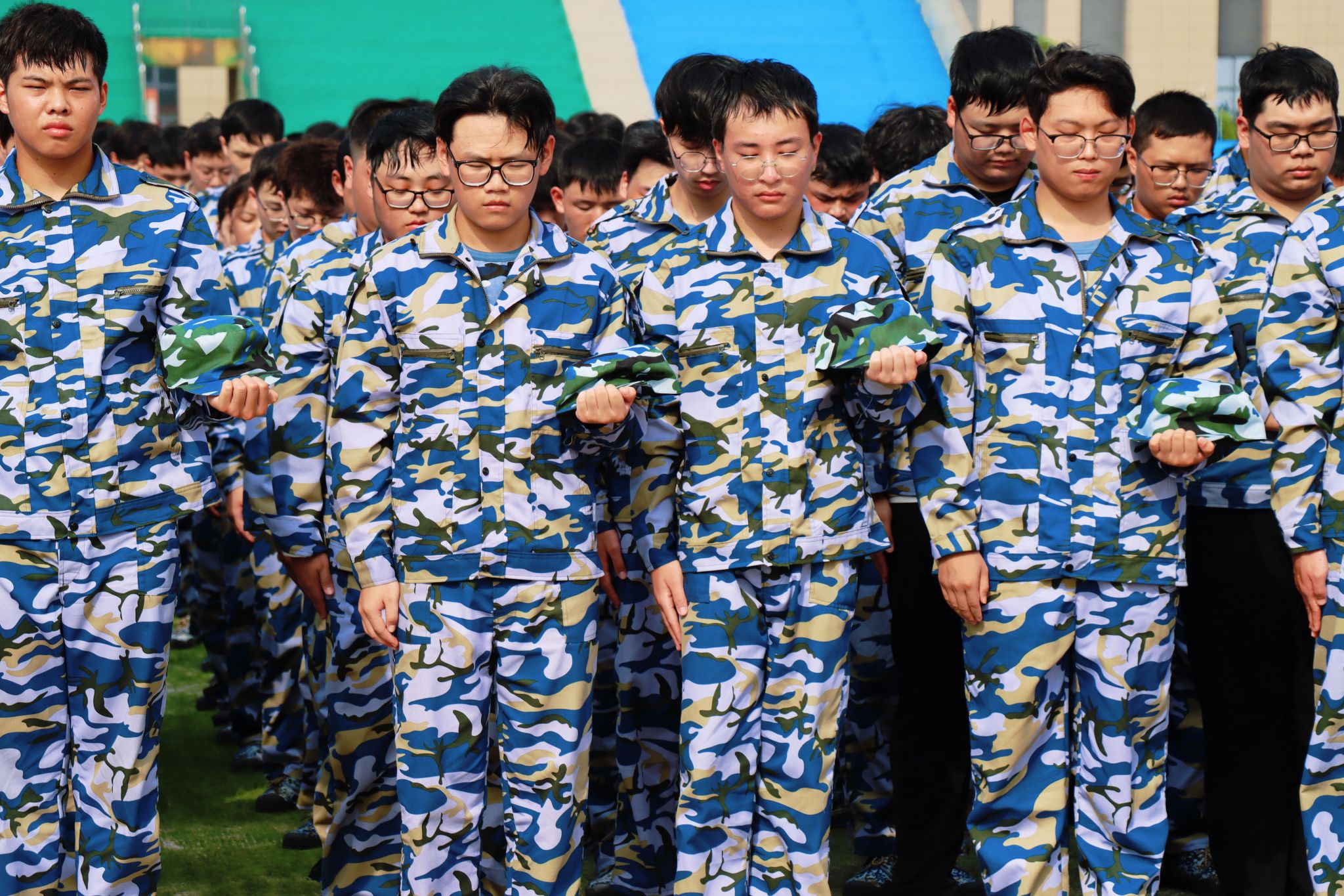 随后,训练场上响起深沉悲壮的旋律,2025级全体参训新生齐声高唱《松花江上》。“我的家在东北松花江上,那里有森林煤矿……”坚定的歌声汇聚成情感的洪流。师生眼含热泪,深刻体悟“勿忘国殇、奋发图强”的时代使命。歌声渐息,承训教官与新生肃穆而立,以洪亮而庄重的誓言齐声宣誓:“勿忘国耻,勇担使命;自强不息,振兴中华!”铮铮誓言,传递出新时代青年铭记历史、砥砺前行的坚定信念。