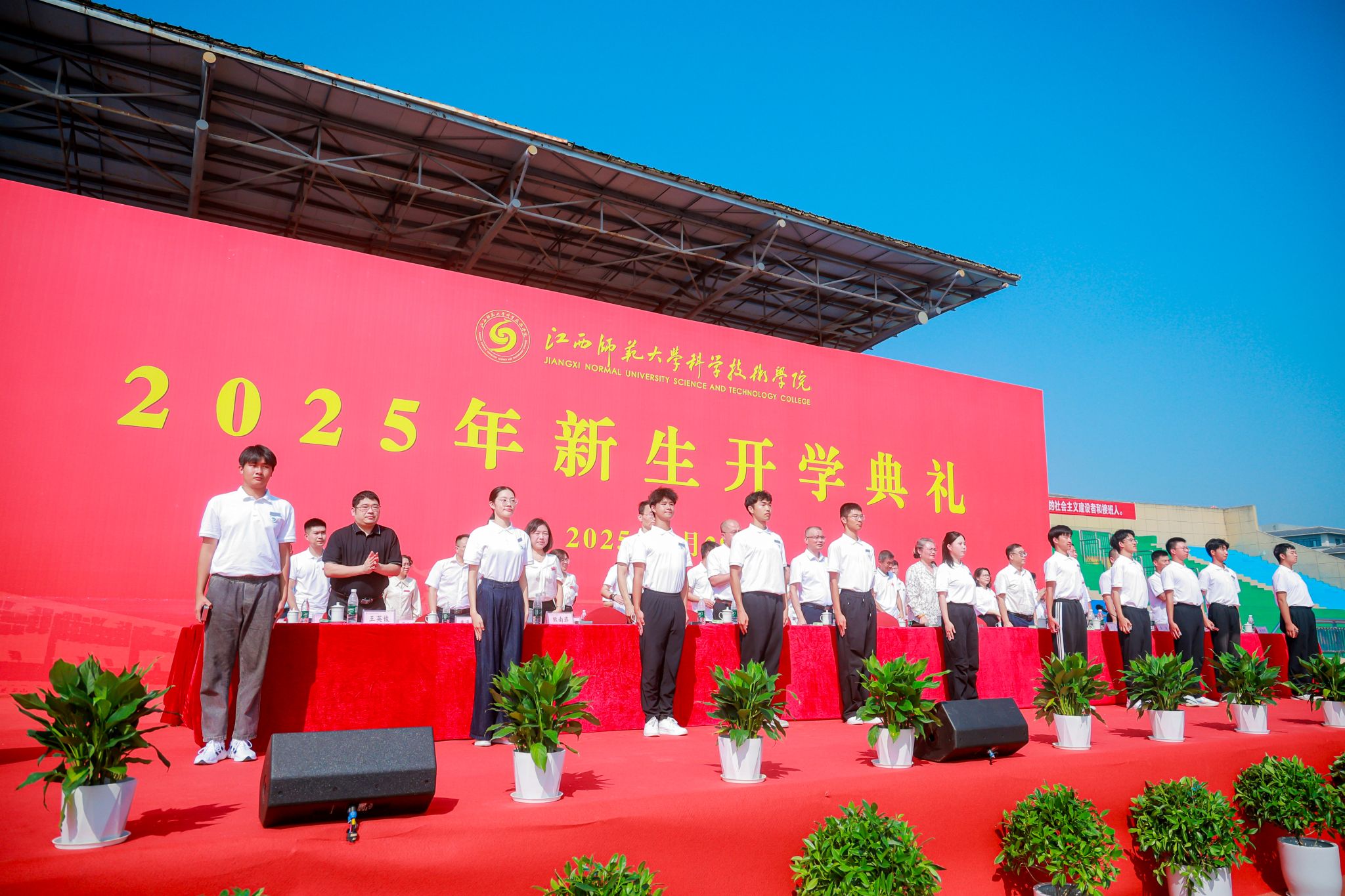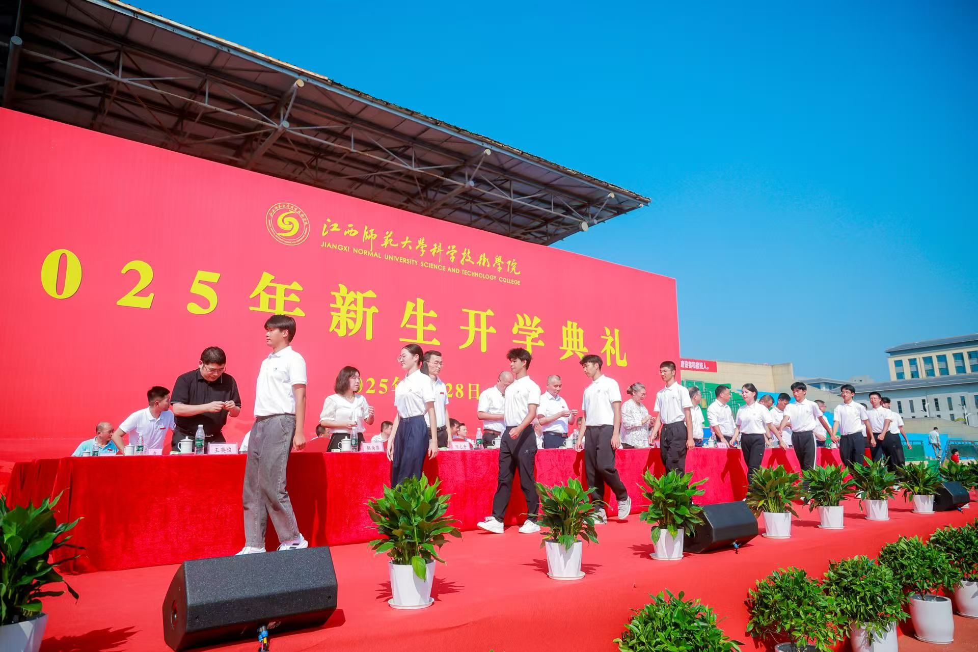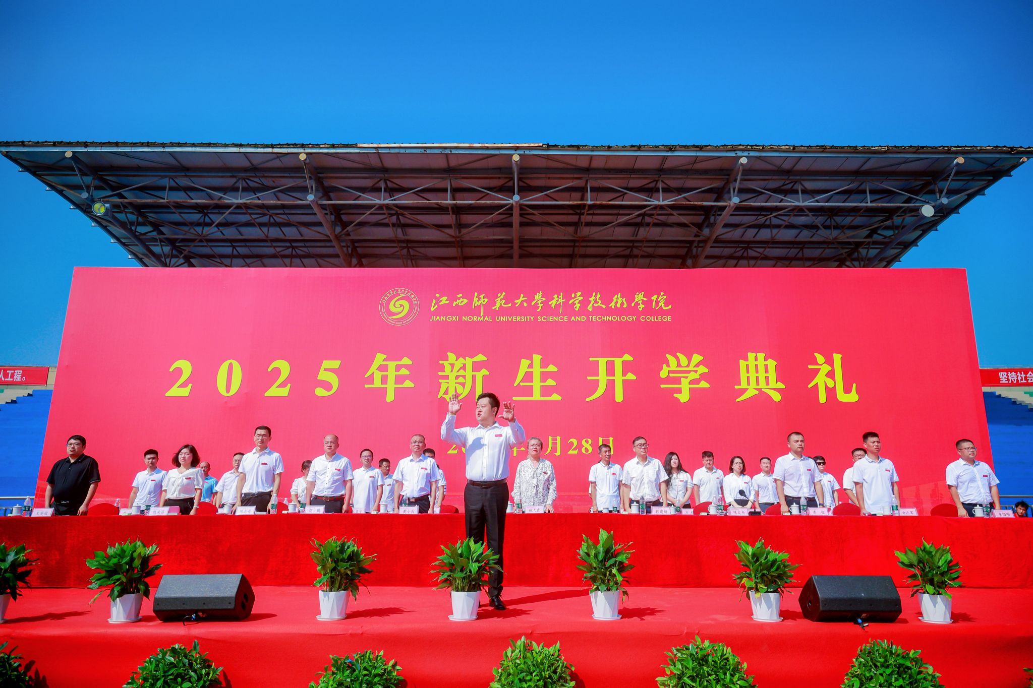 在全场师生的热切注视下,姚弋霞宣布:“江西师范大学科学技术学院2025年新生开学典礼开幕!”