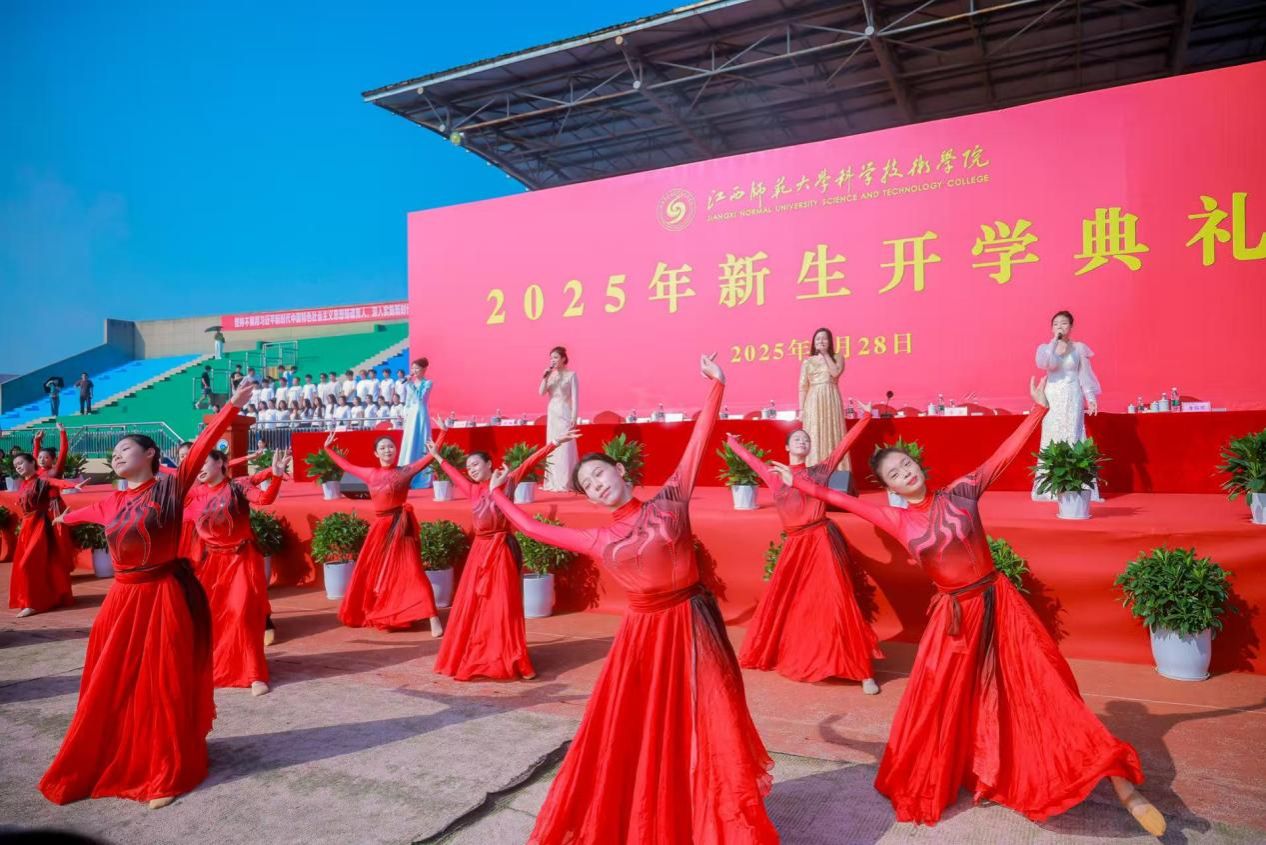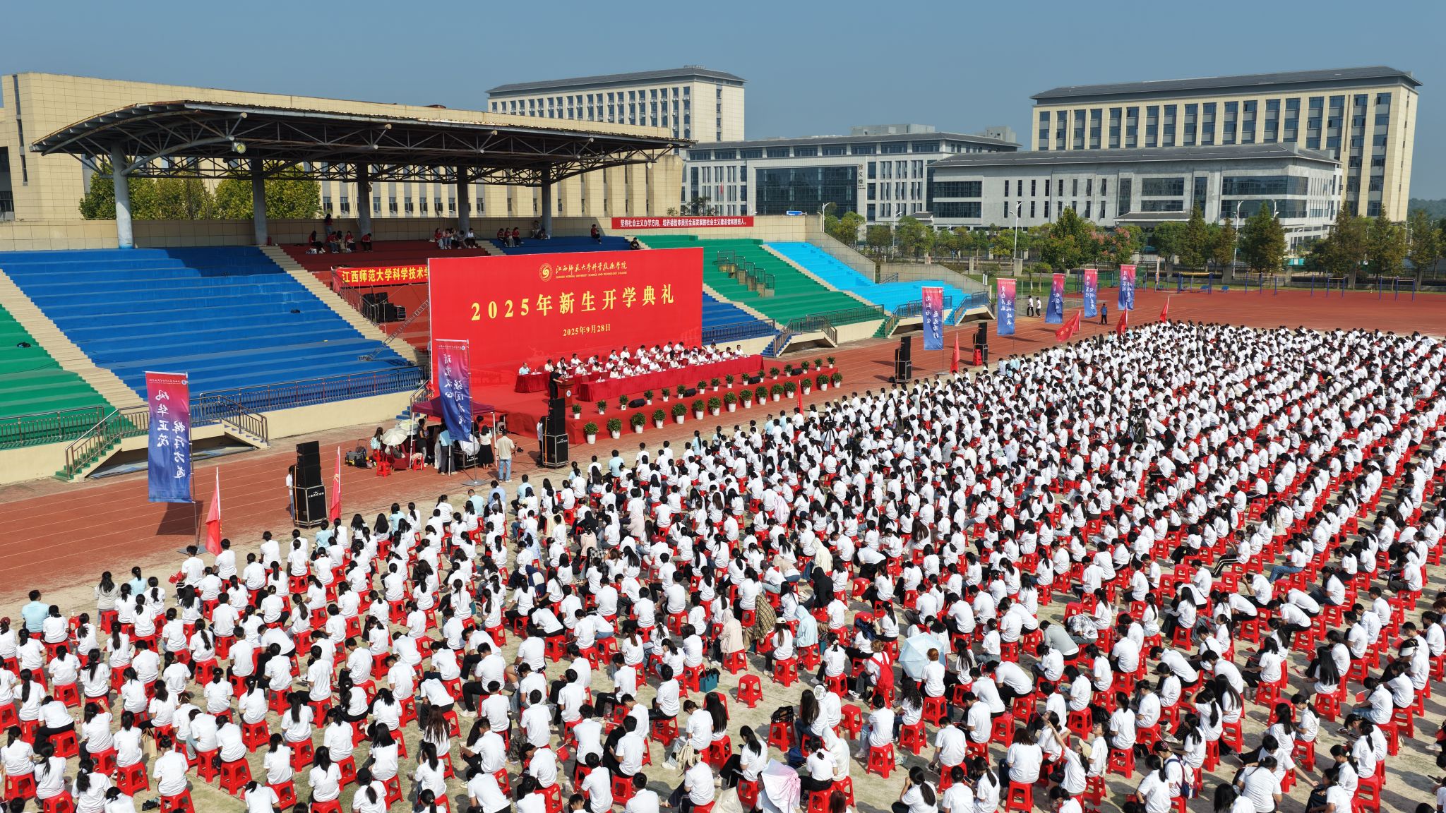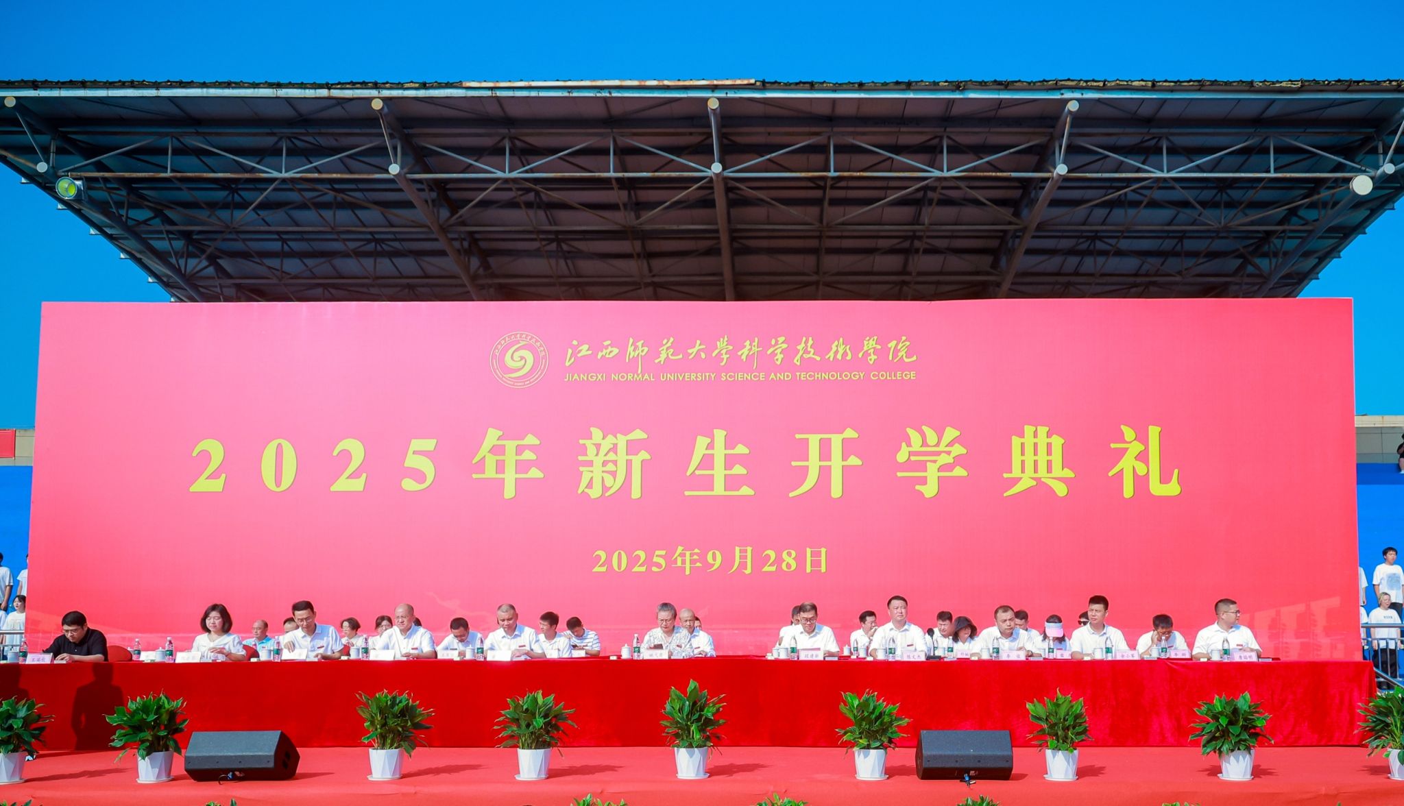 在全场师生的热切注视下,姚弋霞宣布:“江西师范大学科学技术学院2025年新生开学典礼开幕!”