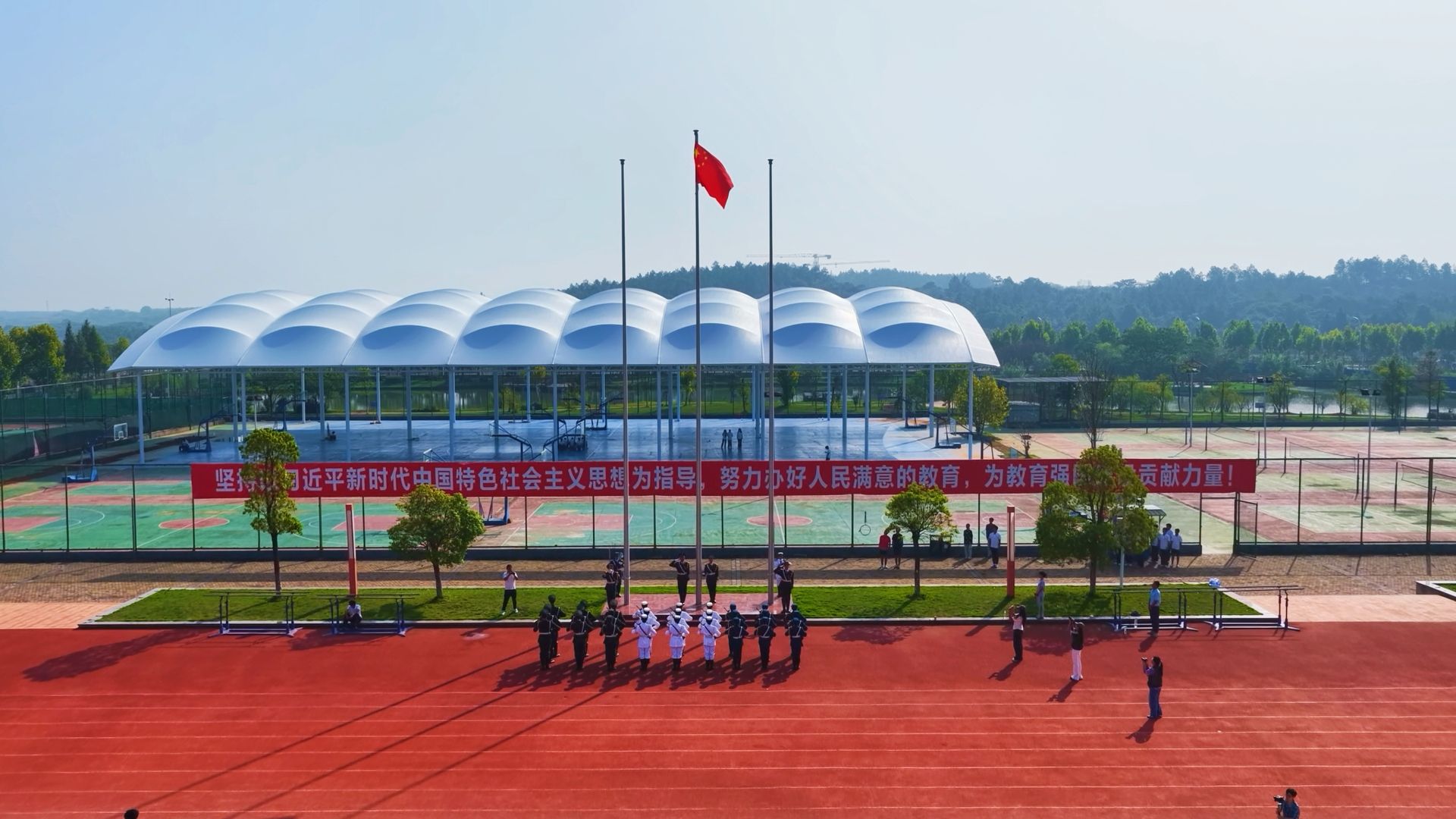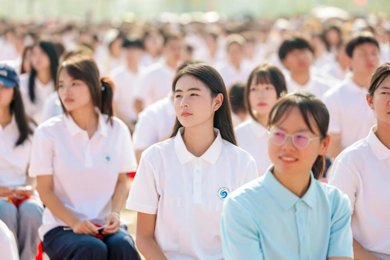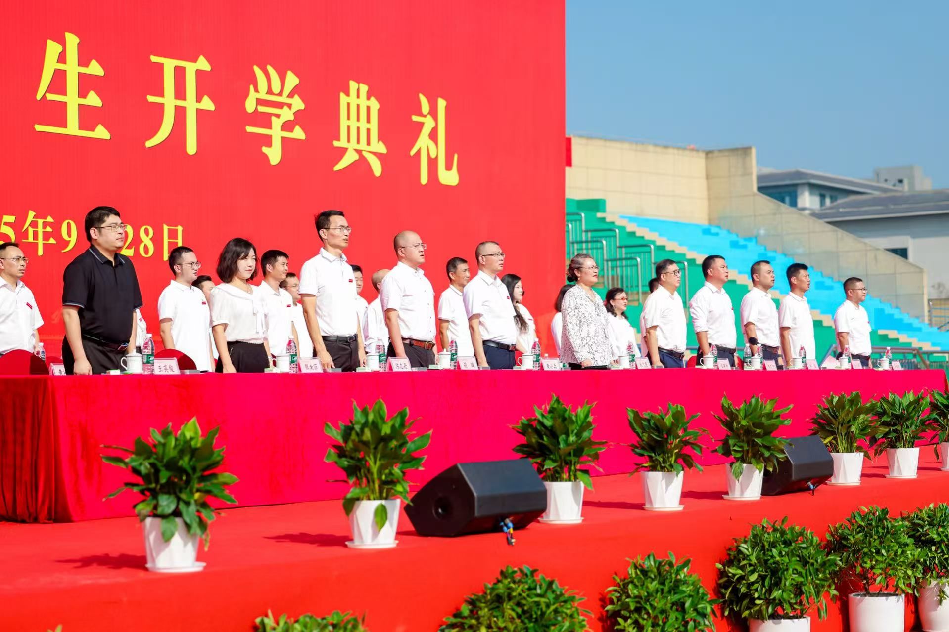 朝阳初升,晨光为田径场镀上温暖金色。上午九时,伴随着雄壮嘹亮的国歌,五星红旗冉冉升起,全体人员肃立注目、齐声高唱,开学典礼在庄严的氛围中正式开启。