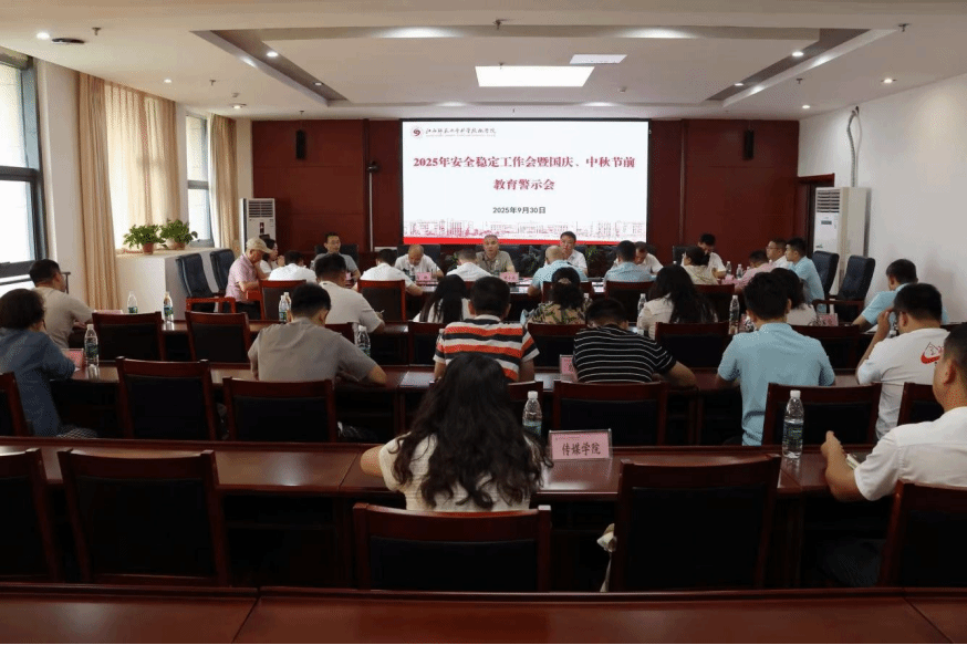 9月30日上午,学院在知行楼第二会议室召开安全稳定工作暨国庆、中秋节前教育警示会,传达学习上级有关文件精神,就做好校园安全稳定工作进行再部署,对严格落实中央八项规定精神、从严纠治“四风”进行再强调。院党委书记黄小兵等全体学院党政班子成员出席会议,各单位、各部门党政主要负责人参加会议。会议由院党委委员詹焰明主持。