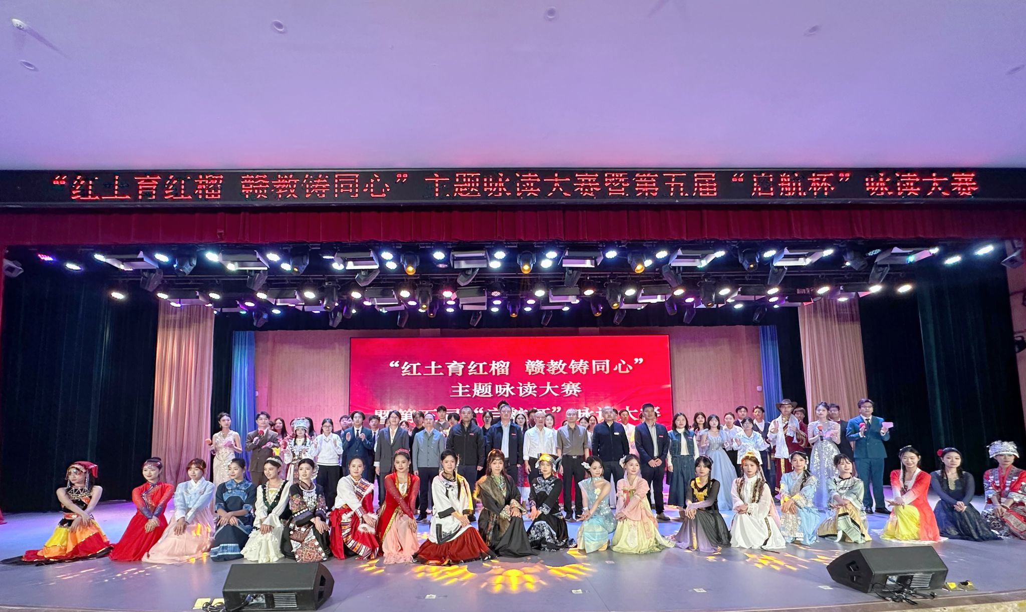 10月28日下午,学院“红土育红榴 赣教铸同心”主题咏读大赛暨第五届“启航杯”咏读大赛决赛在梦剧场隆重举行。共青城市委常委、市委宣传部部长、市委统战部部长鄢俊彬,我院党政班子成员黄小兵、陈文杰、胡鹏、李俊、余小军、熊南菲出席活动。共青城市和学院相关部门负责人和师生代表等1000余人到场观看。
