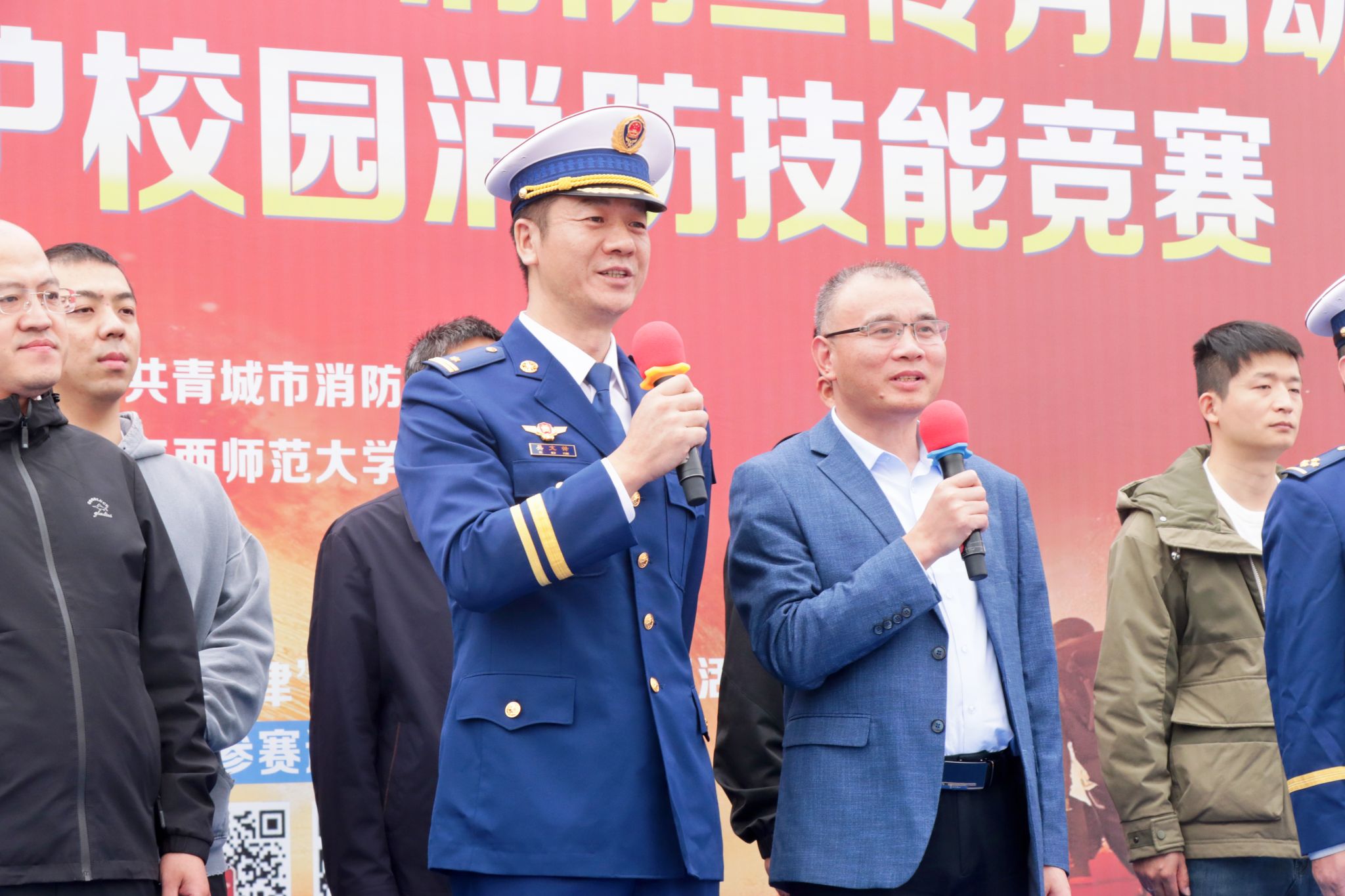 启动仪式上,吴文峰、黄小兵共同宣布:“2025年共青城市‘119’消防宣传月活动正式启动。”