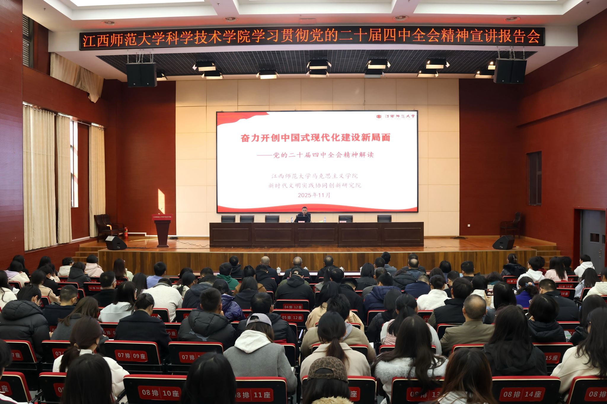 根据学校党委统一部署,11月18日下午,学习贯彻党的二十届四中全会精神学校宣讲团报告会在我院图书馆报告厅举行。党的二十届四中全会精神学校宣讲团成员、马克思主义学院教师张业振博士作专题宣讲报告。我院在家学院党政班子成员,党政管理部门及各教学院党政主要负责人、各党支部书记、思政课专兼职教师与学生代表现场聆听。
