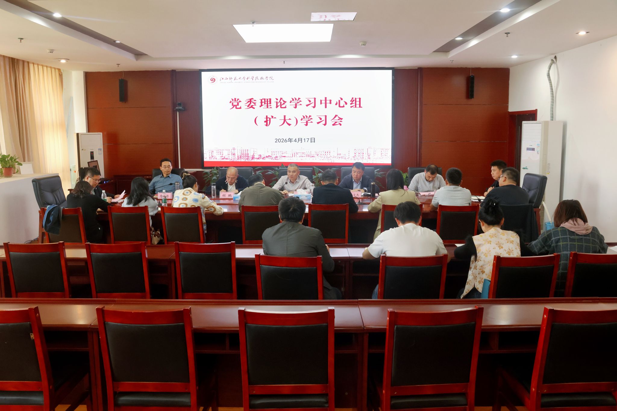 4月17日下午,学院召开党委理论学习中心组(扩大)学习会,深入学习贯彻《习近平总书记地方工作期间坚持正确政绩观生动实践》,牢固树立和践行正确政绩观,坚持为人民出政绩、以实干出政绩,全面开启“十五五”建设新征程,奋力推动学院事业高质量发展。院党委书记黄小兵主持会议并领学,重点就学院贯彻落实进行再部署再强调。在家学院党政班子成员,各党总支负责人、机关各党支部书记参加学习。