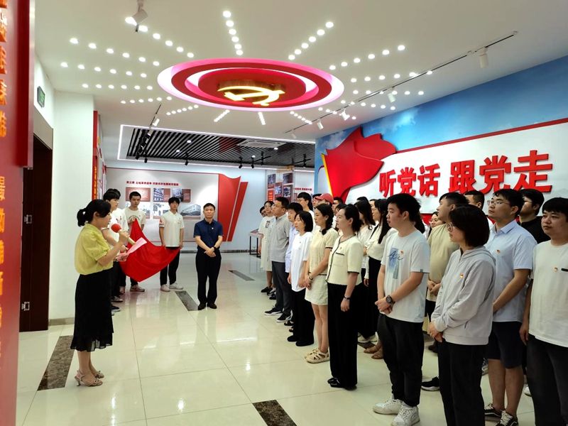 “我志愿加入中国共产党,拥护党的纲领,遵守党的章程,履行党员义务,执行党的决定……”全体党员肃穆而立,面对鲜红的党旗,用铿锵的誓言,诠释入党初心。
