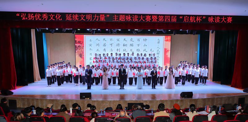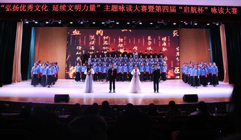 9支教学院代表队,依次登台咏读。《少年中国说》《这盛世如您所愿》揭开了南昌起义一声枪响的那一夜,多少青年前赴后继,为心中的盛世而奋斗终身。《七律·为女民兵题照》《红岩精神》《七律·人民解放军占领南京》《与妻子书》等向我们叙述了革命先驱为实现民族解放、人民独立英勇就义,无私奉献。《盛世中国》《七律·我与改革开放》《改革开放沐春风》等展现了社会主义革命建设时期,在党的领导下所取得的伟大历史成就。《中国汉字,为你骄傲》《中国汉字》等表达了对中华优秀传统文化的坚定自信。