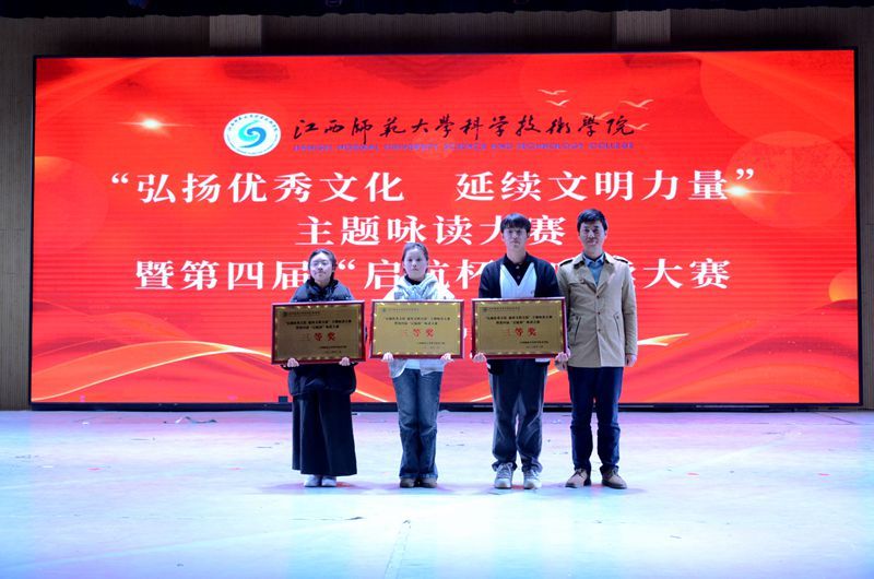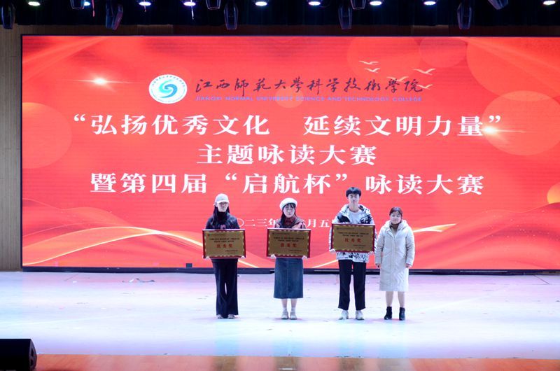 12月5日下午,学院“弘扬优秀文化,延续文明力量”主题咏读大赛暨第四届“启航杯”咏读大赛决赛在梦剧场举行。江西广播电视台主任播音员、省青年讲师团培训导师官雯,共青城市高校媒体中心主持人朱嘉慧等应邀担任评委。院党委书记肖接增、院纪委书记李非,院党委委员余小军、熊南菲和有关单位负责人、师生代表等1000余人到场观看比赛。