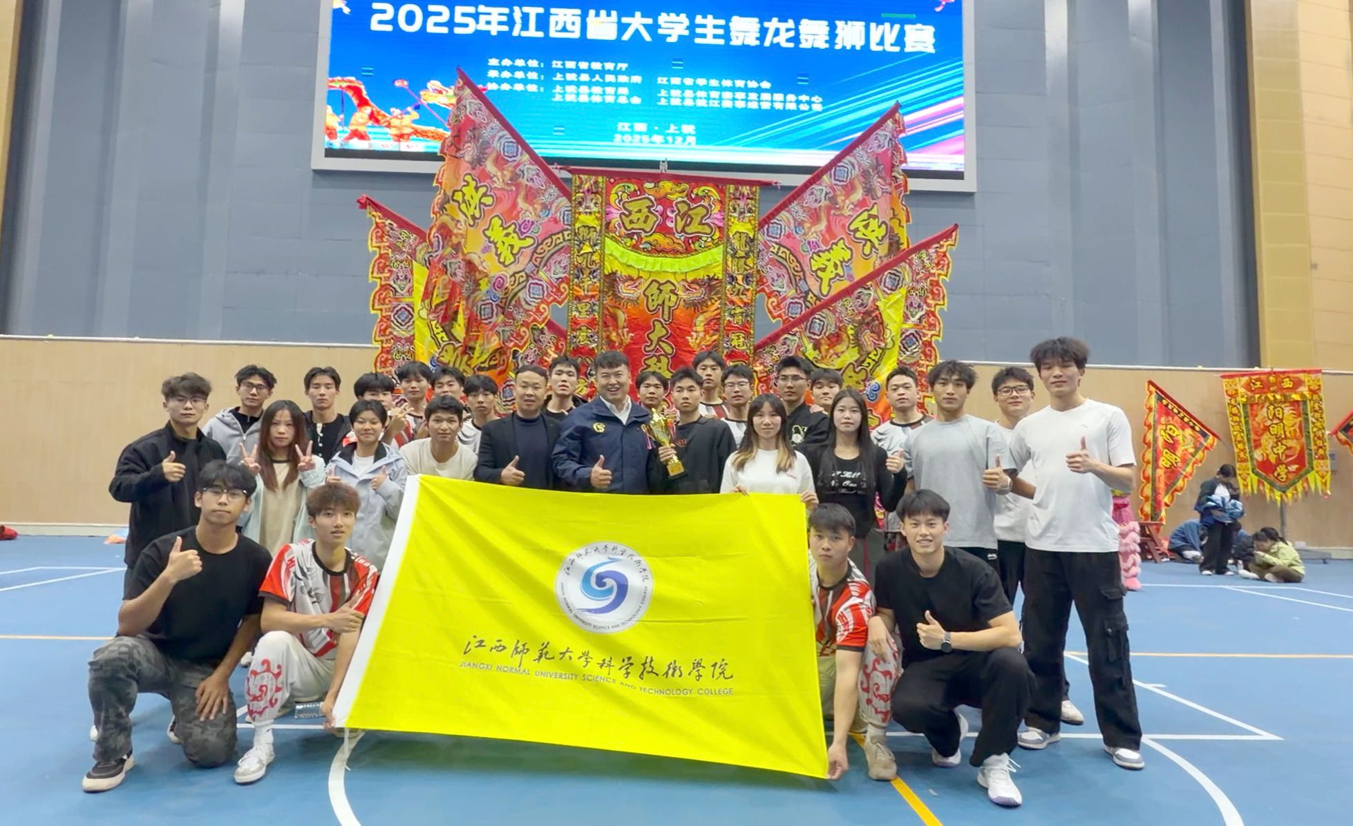 近日,2025年江西省大学生舞龙舞狮比赛在上犹县举办。我院舞龙舞狮代表队发挥出色,共夺得本科乙组舞龙规定、南狮传统、五人彩带龙三项冠军,以及竞速舞龙第二名,并以总分第一的成绩荣获本科乙组团体第一名。